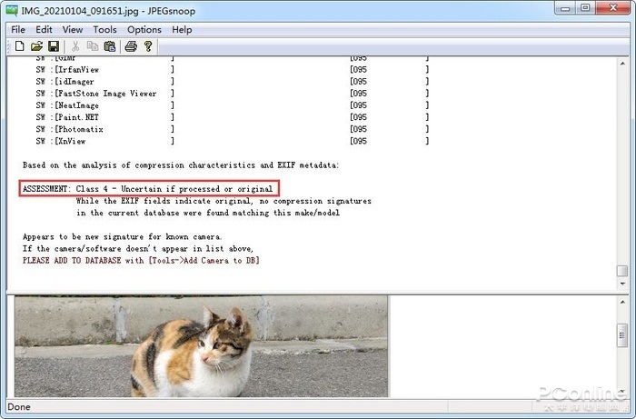 根據(jù) JPEGsnoop 給出的信息,這張圖片是經(jīng)過處理或者編輯的,也就是說它不是原圖。