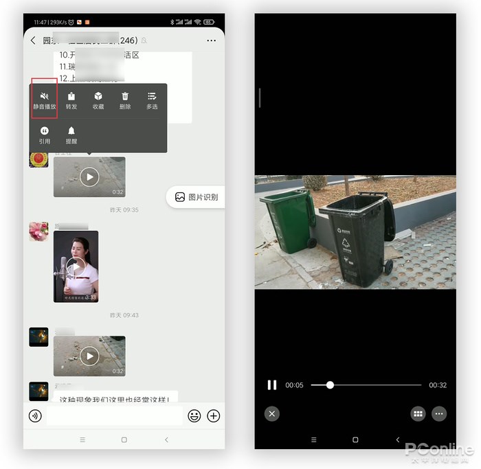 群里面常會(huì)發(fā)過(guò)來(lái)很多視頻,如果你所處的環(huán)境碰巧不方便播放聲音怎么辦?長(zhǎng)按視頻,在彈出菜單里選擇 “靜音播放”。這時(shí)你會(huì)發(fā)現(xiàn)視頻雖已播放,卻不會(huì)發(fā)出任何聲音,這樣就不怕打擾別人了。