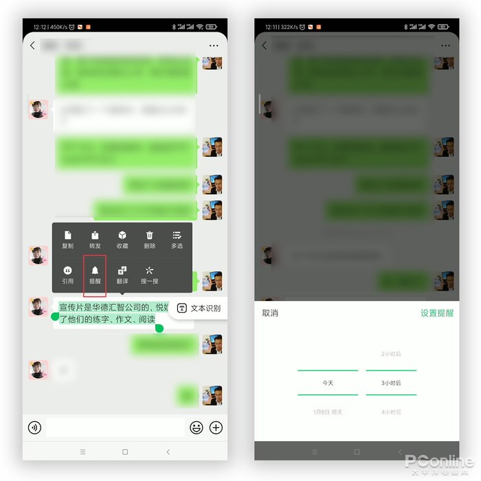 收到一則消息,怎樣將它轉(zhuǎn)成待辦呢?很簡(jiǎn)單,直接在消息上長(zhǎng)按,選擇 “提醒”功能,然后再設(shè)置一個(gè)提醒時(shí)間就可以了。到達(dá)時(shí)間后,微信會(huì)自動(dòng)彈出提醒。做個(gè)備忘錄,還真是不要太方便!