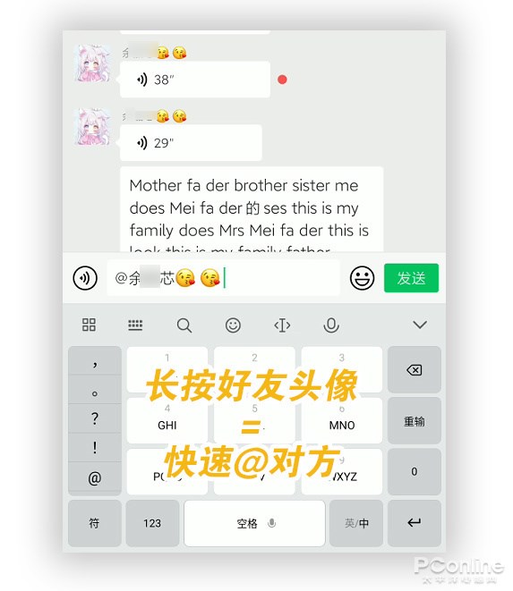 如何在群聊中單獨(dú)提醒某位好友呢?答案就是 @TA 一下。在微信中除了可以直接輸入 “@”符號(hào)外,還有一個(gè)更快捷的方法,那就是直接在群聊頁(yè)面中長(zhǎng)按要 @的好友。稍后微信會(huì)自動(dòng)填寫該好友的 @前綴,再輸入你的信息就可以了。